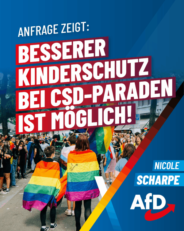 Zur Antwort der Landkreisverwaltung auf meine Anfrage zum Kinder- und Jugendschutz bei CSD-Veranstaltungen erkläre ich als Kreisrätin Nicole Scharpe: