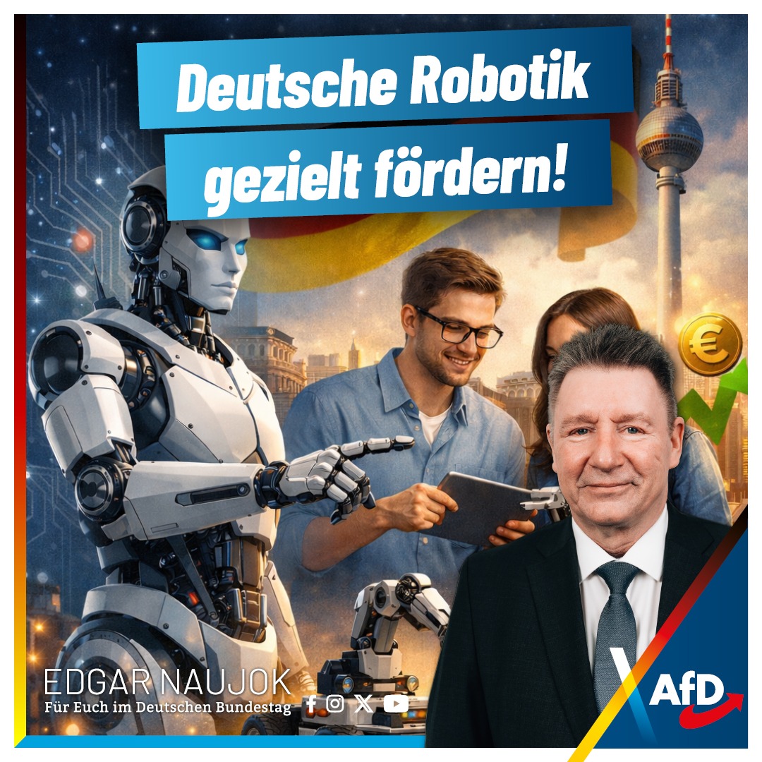 Der AfD-Bundestagsabgeordnete Edgar Naujok, Berichterstatter für Robotik im Ausschuss für Digitales und Staatsmodernisierung, kommentiert die Förderung des Münchner Start-Up-Unternehmens RobCo in Höhen von 100 Millionen US-Dollar durch Investoren: