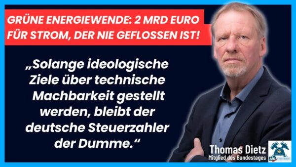 Während unsere Bürger unter immer höheren Strompreisen ächzen und der Mittelstand um seine Existenz kämpft, wirft die Bundesregierung das Geld der Steuerzahler zum Fenster hinaus. Rund 2 Milliarden Euro wurden in den letzten vier Jahren allein dafür bezahlt, dass „grüner“ Strom nicht eingespeist wurde – weil unser marodes Netz ihn gar nicht aufnehmen kann!