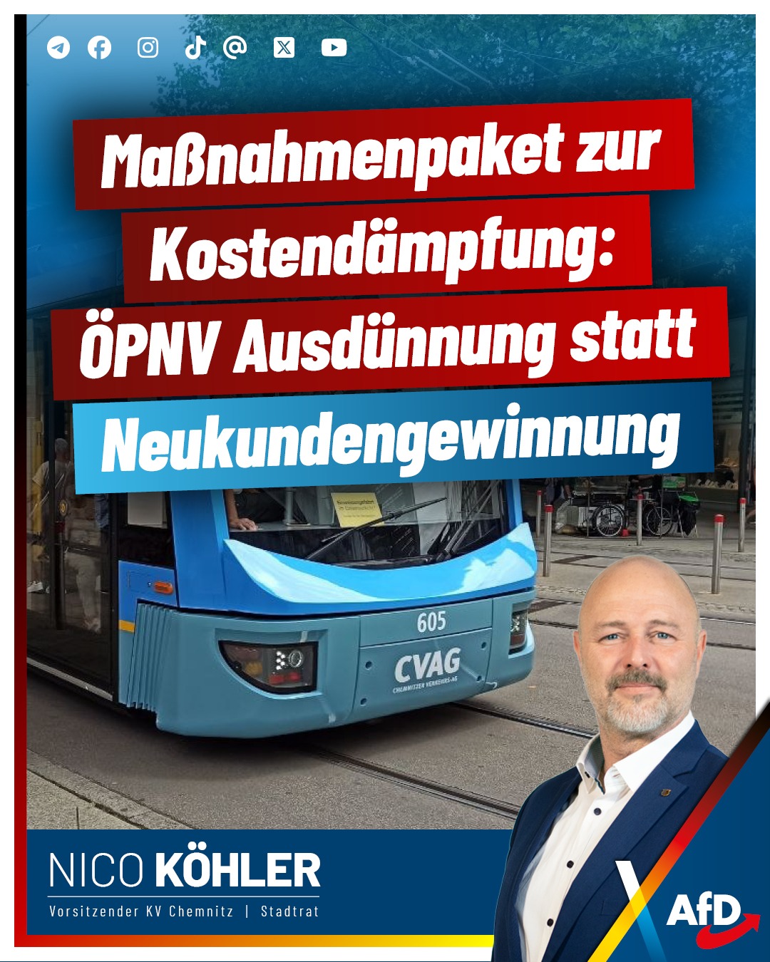 Die AfD-Stadtratsfraktion Chemnitz hat deshalb eine Ratsanfrage gestellt. Ziel ist es, neue Wege zur Kundengewinnung zu prüfen – zum Beispiel ein befristetes Sonderabo für Neu- und Rückkehrer.