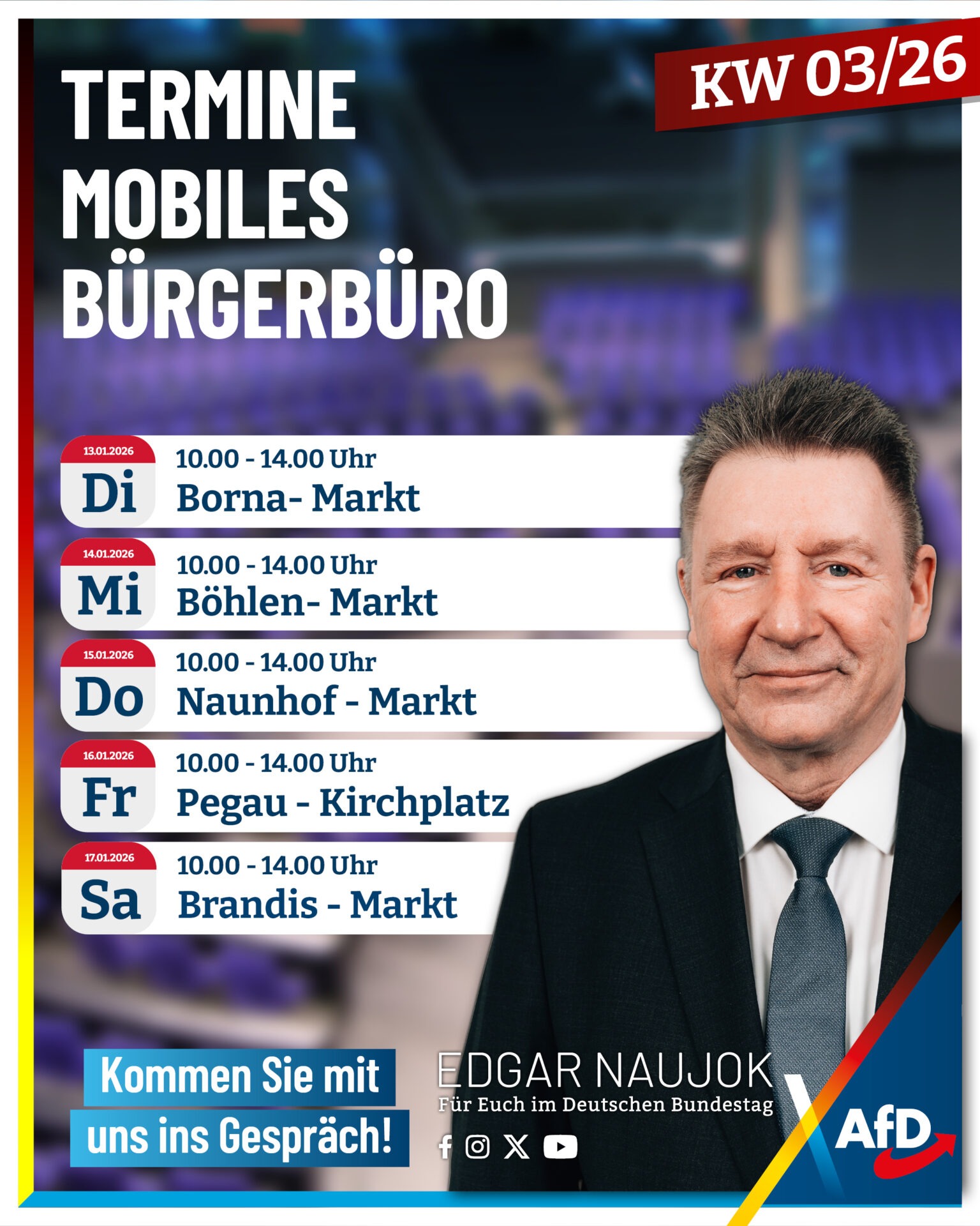 Edgar Naujok: Infostand am 13.01.2026 in Borna – Markt