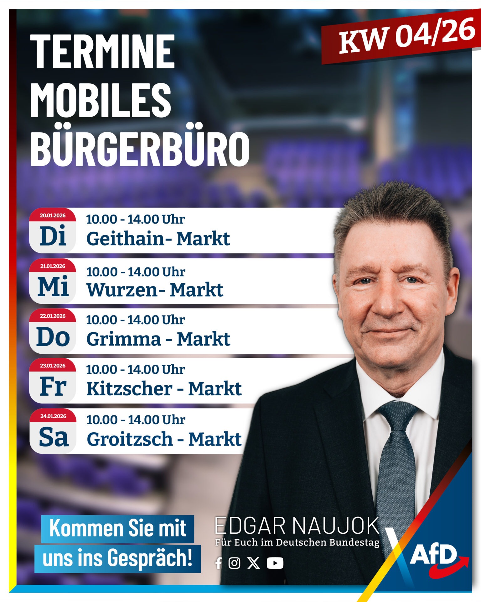 20.01.2026 – Dienstag, 10.00 – 14.00 Uhr: Geithain – Markt